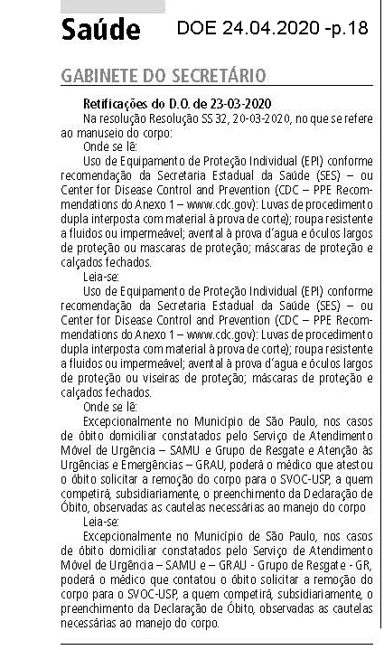 RETIFICAÇÕES do D.O. de 23-03-2020 publicadas no DOE 28/04/2020 - p. 18; alterada pela Resol 132/21