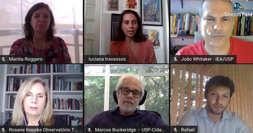 A mesa de debates foi composta pela mediadora do evento e represetante do Observatório de Políticas Públicas do TCMSP, Rosane Keppke; Rafael Waissman, auditor e também representante do Observatório; Marília Roggero, representante da Secretaria de Desenvolvimento Urbano; Luciana Travassos, professora adjunta da UFABC; João Whitaker, professor de urbanismo da FAU e IEA – USP; e Marcos Buckeridge, diretor do IB e coordenador do IEA – USP.