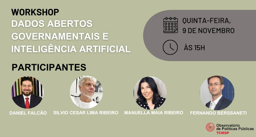 Em 9 de novembro, o Observatório de Políticas Públicas (OPP) do Tribunal de Contas do Município de São Paulo (TCMSP) promove um workshop sobre dois temas interligados e de grande importância na vida de todo cidadão e toda cidadã: dados abertos governamentais e inteligência artificial.