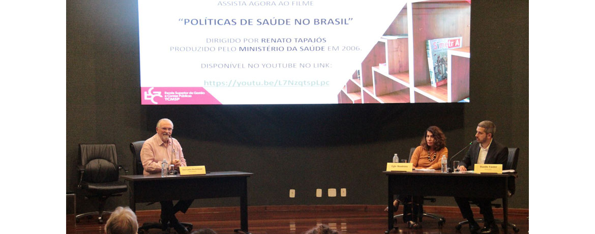 Após a resposta aos questionamentos do público, feitos presencialmente e por meio do canal do Youtube da EGC, foi exibido o documentário “Políticas de Saúde do Brasil”, do diretor Renato Tapajós, que faz um apanhado histórico de como se deu a construção de um sistema de atendimento à saúde no Brasil, desde as antigas caixas de aposentadorias e pensões até a implantação do SUS. O filme está disponível no YouTube.