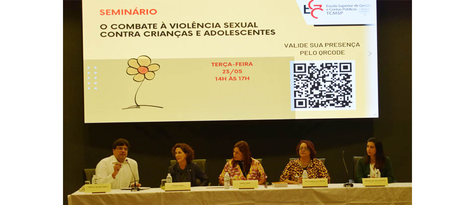 Na tarde desta terça-feira, 23 de maio, ocorreu, no auditório da Escola de Gestão e Contas Públicas (EGC) do Tribunal de Contas do Município de São Paulo (TCMSP), o seminário “O combate à violência sexual contra crianças e adolescentes”. Com participação da diretora-presidente do Instituto Liberta e ex-secretária de Assistência e Desenvolvimento Social do município de São Paulo, Luciana Temer, da diretora do Núcleo de Apoio e Acompanhamento para Aprendizagem (NAAPA) da Secretaria Municipal de Educação (SME), Márcia Andrea Bonifácio da Costa Oliveira, e da médica legista e sexóloga forense Mariana da Silva, o evento foi mediado pela pedagoga e mestranda da PUC-SP e servidora da EGC/TCMSP, Samira Saleh e contou ainda com a participação do professor da EGC, Silvio Gabriel Serrano Nunes, na qualidade de debatedor. O conselheiro dirigente da EGC, João Antonio da Silva Filho, o conselheiro presidente do TCMSP, Eduardo Tuma, o diretor presidente da EGC, Ricardo Panato, e o chefe de Gabinete da Escola, Marcos Barreto, também prestigiaram o encontro, que reforçou a necessidade de romper com a invisibilidade da violência sexual cometida contra as crianças e adolescentes, um crime grave e bastante frequente, mas cuja verdadeira dimensão ainda é pouco conhecida por conta da subnotificação das ocorrências e pela omissão de quem as presencia.