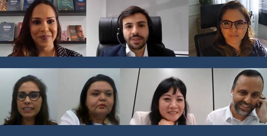 Roberta Aragão prosseguiu delineando os procedimentos de coleta de dados: pesquisa documental, observação direta a creches e escolas (check-list de verificação), verificação da estrutura física das escolas e creches, material pedagógico, oferta da alimentação escolar, condições de transportes escolares, aplicação de questionário virtual com gestores escolares, docentes e profissionais da educação infantil e entrevista com secretários(as) municipais da educação.