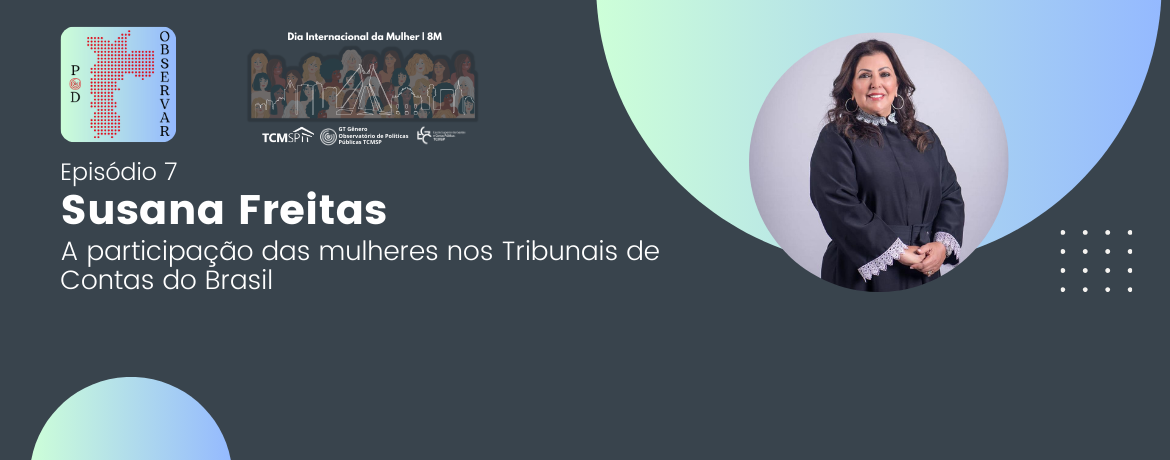 Já está no ar a nova edição do Pod Observar que debate igualdade de gênero e celebra o Dia Internacional da Mulher. Este sétimo episódio do podcast do Observatório de Políticas Públicas (OPP) do Tribunal de Contas do Município de São Paulo (TCMSP) ouve Susana Maria Fontes de Azevedo Freitas, presidente do Tribunal de Contas do Estado de Sergipe (TCE-SE).