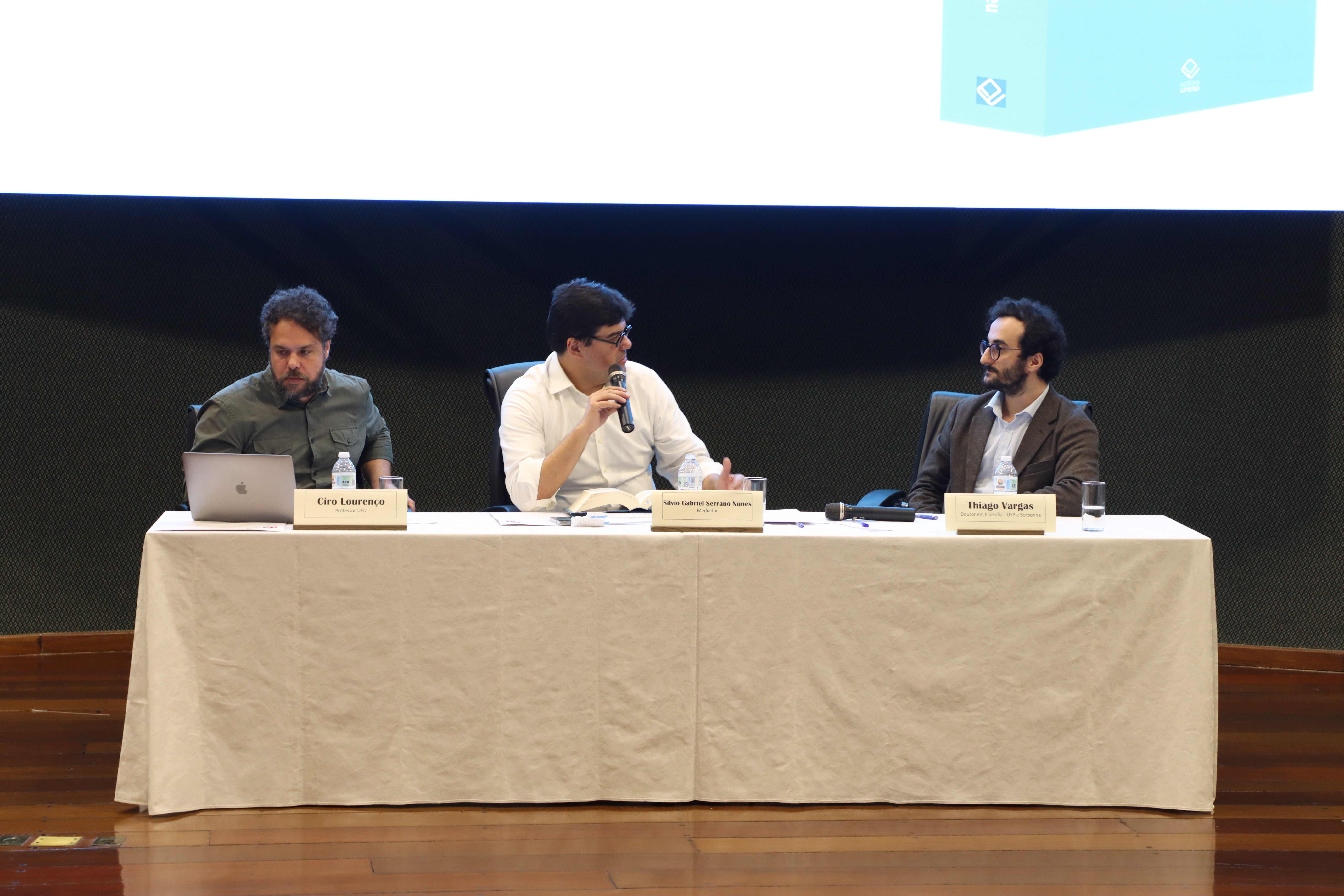 Em seguida, foi apresentado o professor Ciro Lourenço, da Universidade Federal de Uberlândia, que tem mestrado em Filosofia pela USP e, atualmente, é doutorando em dupla titulação pela USP e pela Université de Paris 1 - Panthéon-Sorbonne. Sua pesquisa concentra-se sobre as ideias de justiça e igualdade na filosofia política moderna, com especial atenção ao pensamento de Rousseau. É tradutor de Do Contrato Social na coletânea Rousseau – Escritos sobre a política e as artes e Do espírito das leis, de Montesquieu.