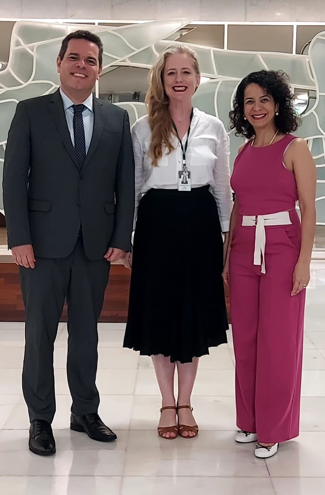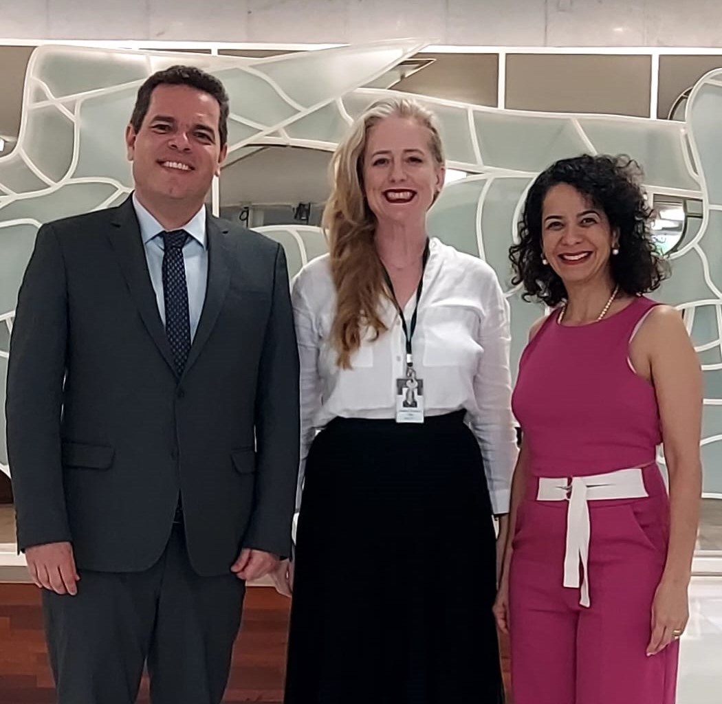 A diretora da Escola de Gestão e Contas do Tribunal de Contas do Município de São Paulo (ECG-TCMSP), professora-doutora Ana Carla Bliacheriene e o chefe de gabinete, professor-doutor Luciano Vieira de Araújo, visitaram, na terça-feira (22/11), a assessora técnica da Secretaria da Mulher da Câmara dos Deputados, Danielle Gruneich. O objetivo do encontro foi tratar de projetos conjuntos das duas instituições sobre capacitação em políticas públicas destinadas às mulheres.