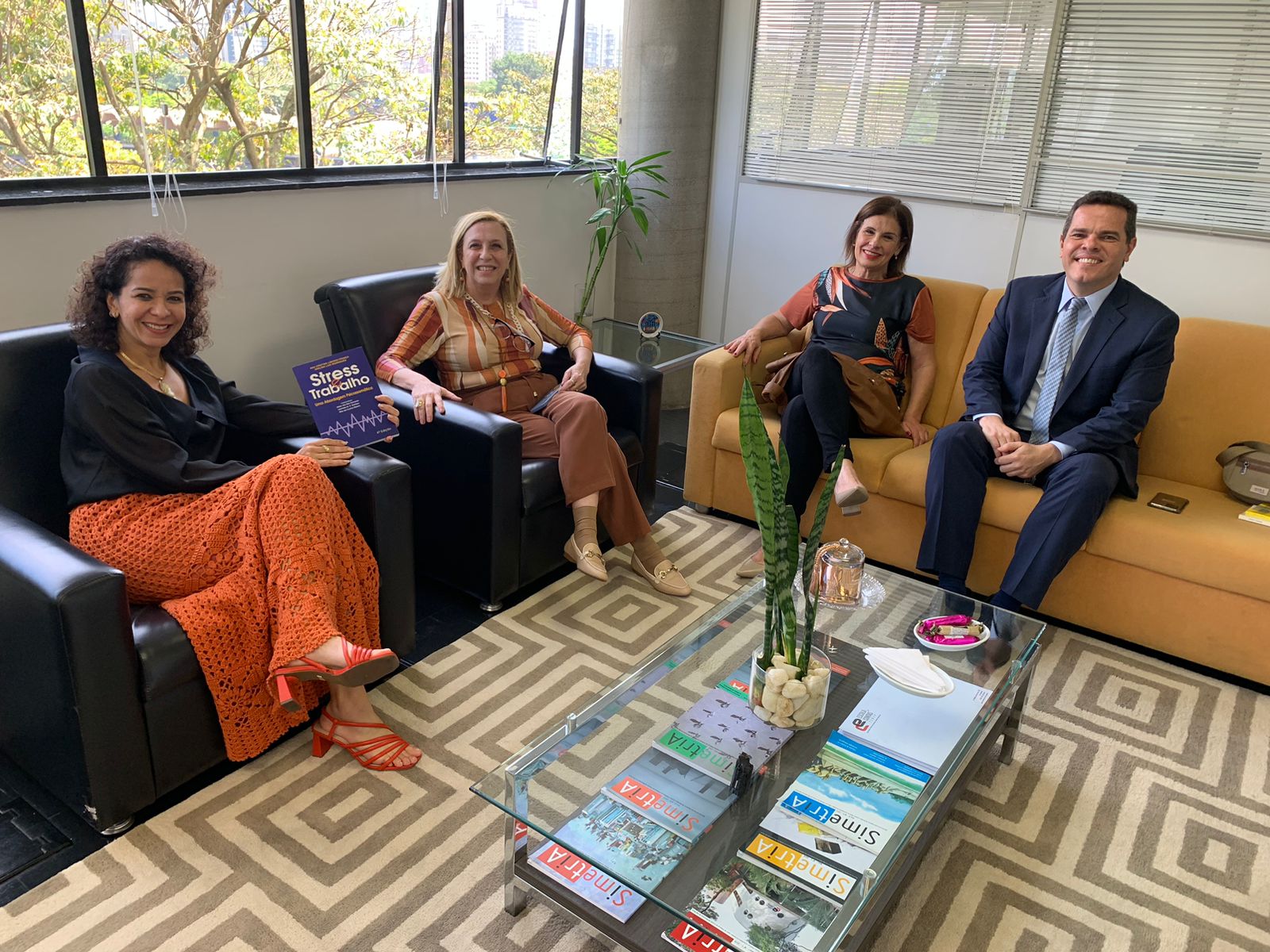 Estiveram presentes a diretora-presidente da EGC-TCMSP, Ana Carla Bliacheriene, o chefe de gabinete, Luciano Vieira de Araújo, e a Gestora das Relações de Trabalho, Luiza Correia Hruschka.