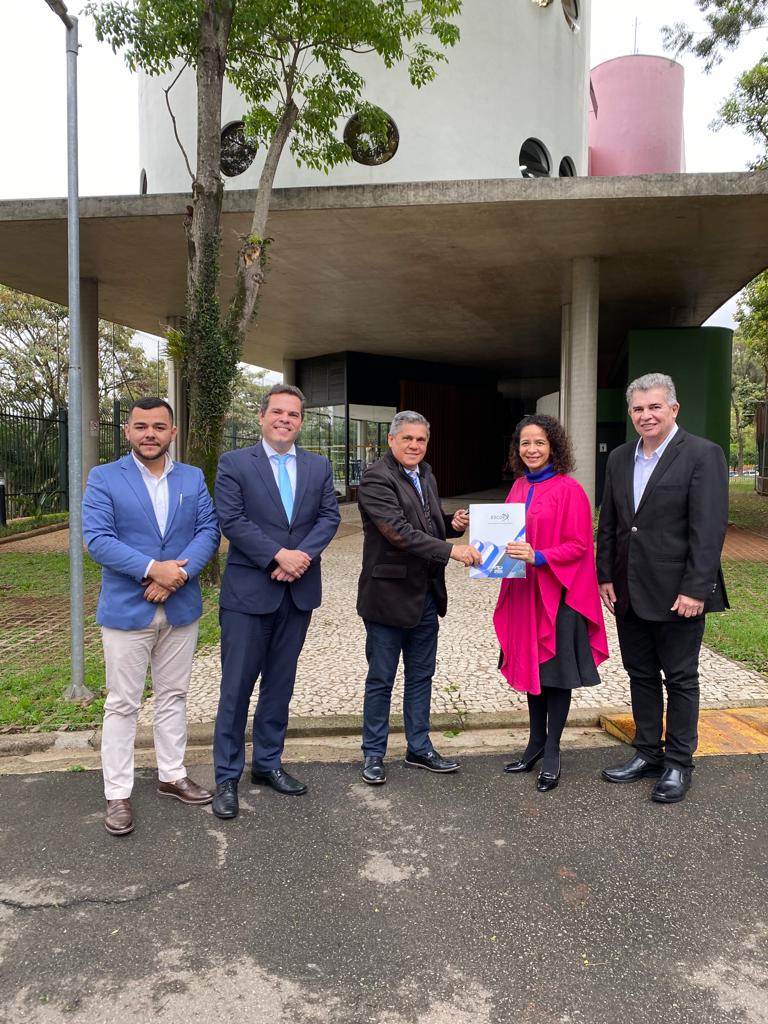 O conselheiro e diretor-geral da Escola Superior de Controle Externo do Tribunal de Contas do Estado do Mato Grosso do Sul (ESCOEX do TCE-MS) Waldir Neves, Nelson Luiz Brandão Junior, chefe de gabinete e o seu assessor William das Neves Barbosa, foram recebidos, quinta-feira (15/09), pela diretora da Escola de Gestão e Contas Públicas (EGC) do Tribunal de Contas do Município de São Paulo (TCMSP), professora-doutora Ana Carla Bliacheriene, e pelo chefe de gabinete da instituição, professor-doutor Luciano Vieira de Araújo.