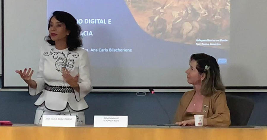 O presidente João Antonio desenvolveu o tópico “Democracia, Estado e Controle”, no dia 7 de setembro. Já a professora Ana Carla falou sobre “Governo Digital e Democracia”, no dia 6 de setembro.