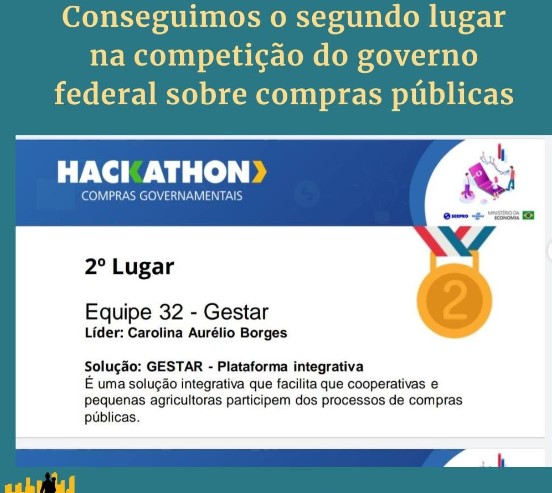 A aluna de pós-graduação em Gestão Pública na Escola Superior de Gestão e Contas Públicas (EGC), Carolina Borges, foi uma das vencedoras do Hackhaton, competição de programação promovida pelo governo federal sobre Compras Governamentais. A estudante integrou a equipe 32 – Gestar, que ficou em segundo lugar na competição. O desafio colocado pelos promotores do evento, que se encerrou dia 28/07 (quinta-feira), foi criar uma solução que aumentasse as vendas de micro e pequenas empresas para o governo, por meio de licitações públicas.
