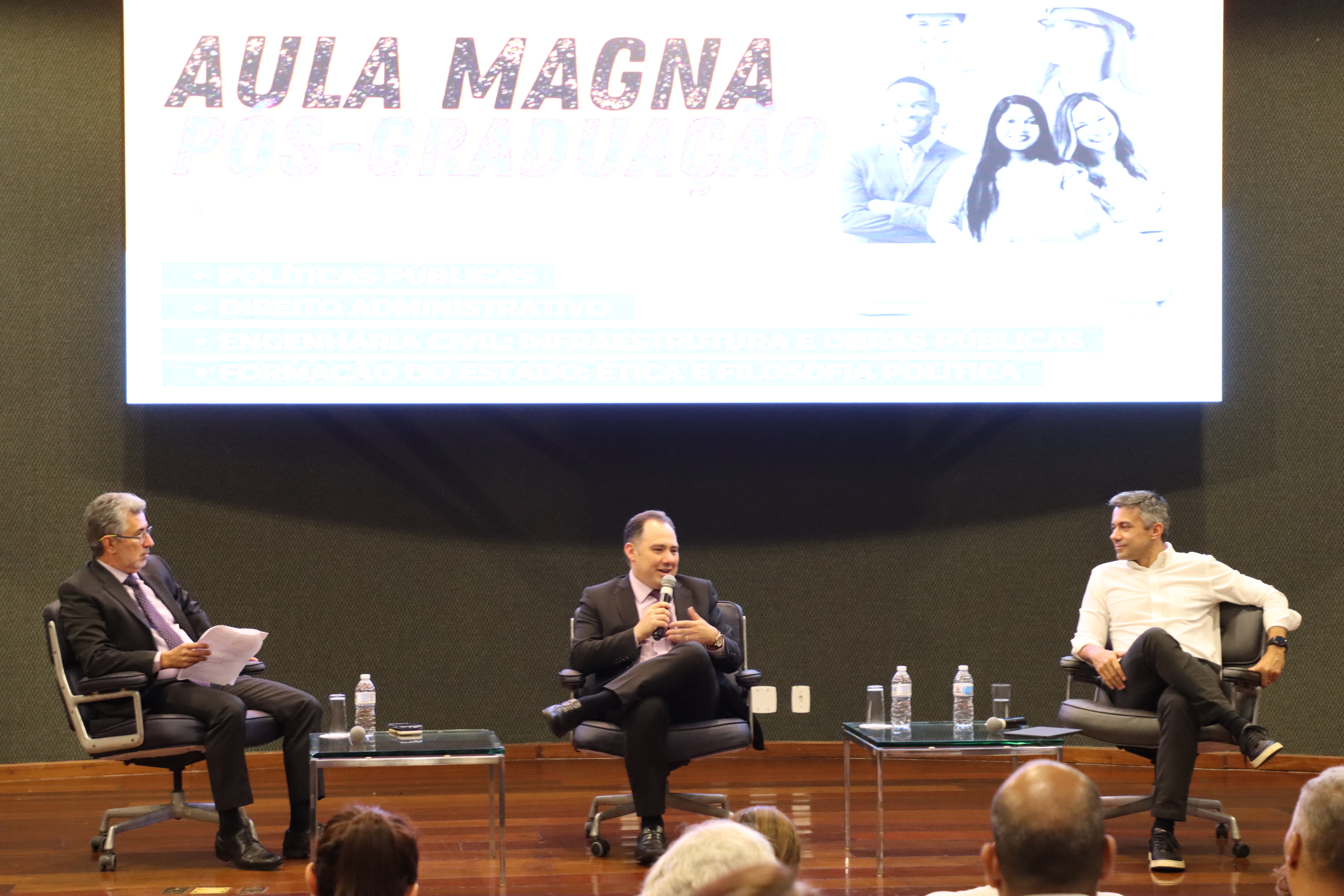 Também presente, o conselheiro vice-presidente, Ricardo Torres, representando a Presidência do Tribunal, saudou os alunos e o corpo docente da EGC. Destacando que um dos méritos dos cursos de pós-graduação da Escola é permitir ao gestor público um percurso que vai de temas mais abstratos, como Ética e Filosofia Política, aos mais práticos, como Engenharia Civil, o conselheiro vice-presidente Ricardo Torres afirmou a importância de iniciar essas novas turmas com uma reflexão sobre a defesa da democracia. “É um tema central nos dias atuais porque a todo momento ela é confrontada”, observou, afirmando que a grande questão que se coloca atualmente é saber no interesse de quem e sob o manto de quais interesses se exerce a democracia.