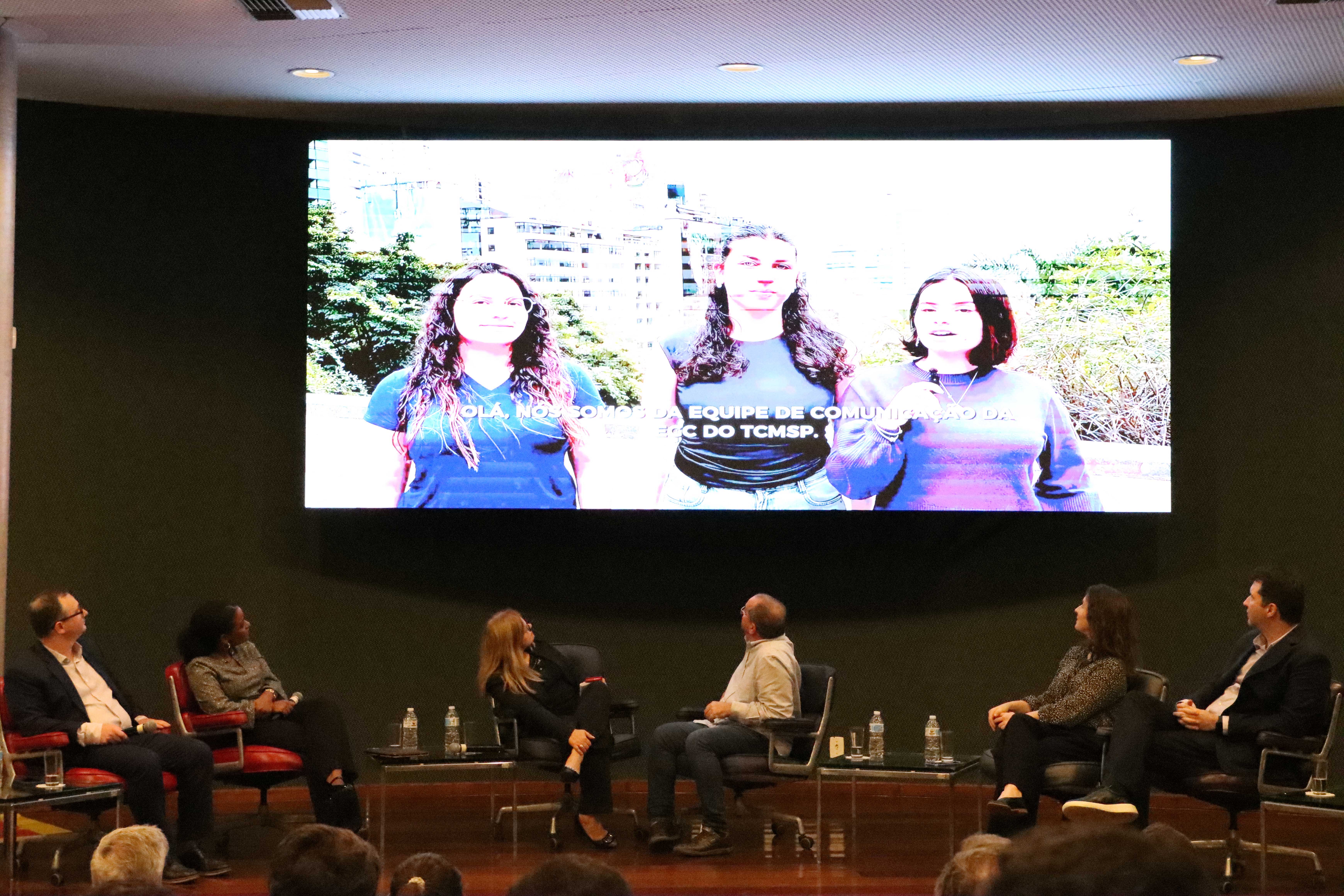Com mediação de Mariana Cury, coordenadora de Eventos e Cultura da EGC, o bate-papo reuniu os auditores Sandra Albarello, Helen Steffen, Rosi Alves, João Florence; e Sandro Scovini. Na oportunidade, foi exibido um vídeo para festejar os responsáveis pelas auditorias realizadas pelo TCMSP.
