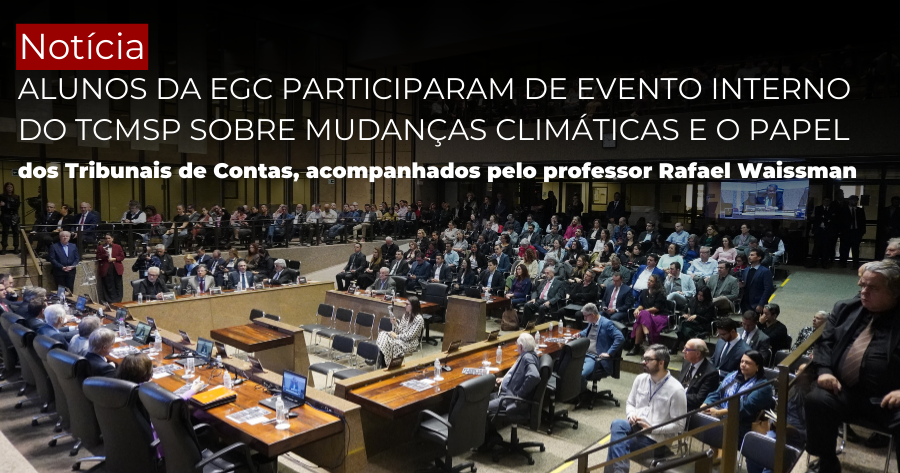 Vinte e dois alunos da Especialização em Engenharia Civil: Infraestrutura e Obras Públicas da Escola de Gestão e Contas (EGC) do Tribunal de Contas do Município de São Paulo (TCMSP) participaram, no último dia 19, do seminário “Mudanças Climáticas e o Papel dos Tribunais de Contas”, acompanhados pelo professor Rafael Waissman.