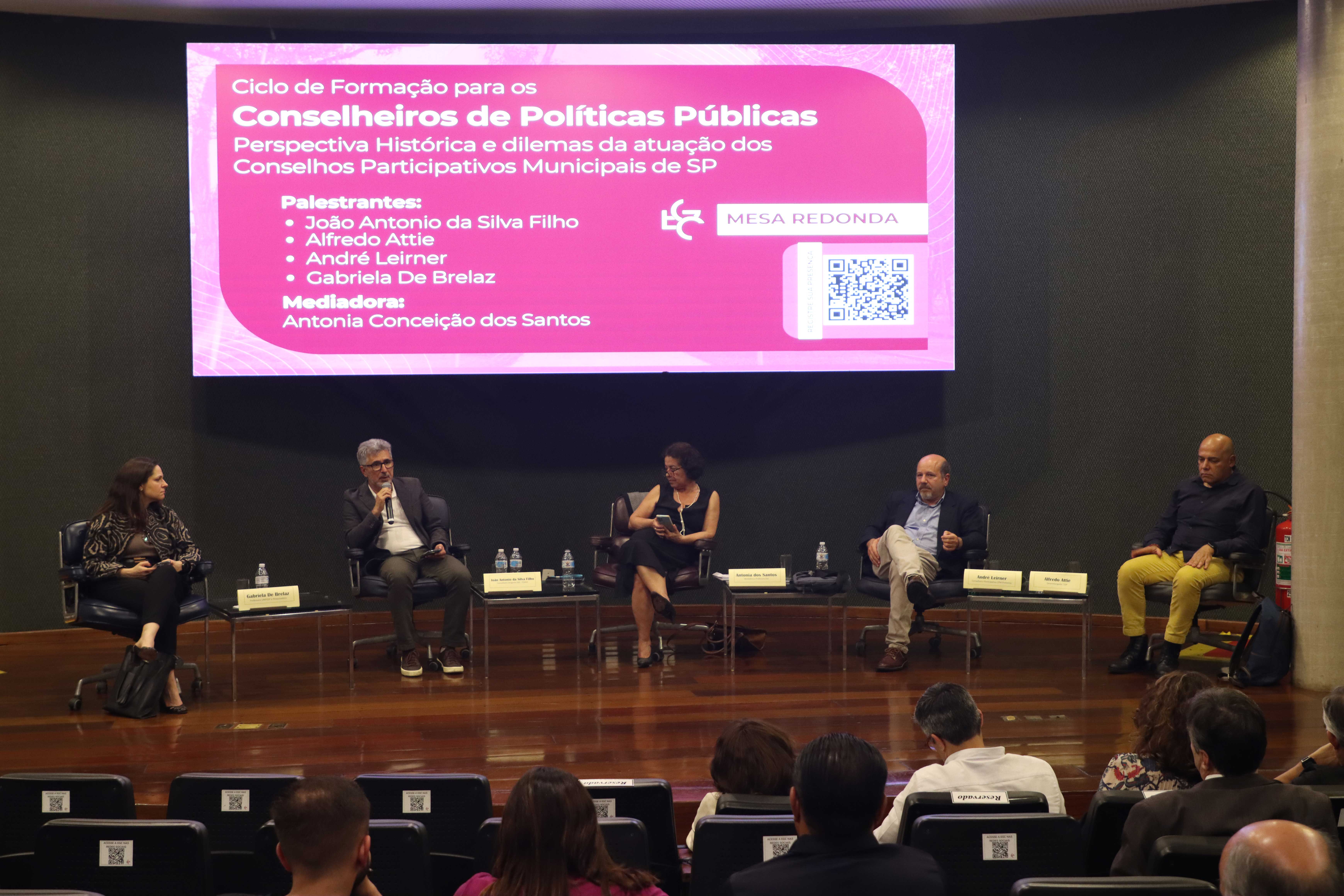 Para tratar do tema, a mesa redonda de abertura contou com a participação de palestrantes renomados, incluindo o conselheiro do TCMSP, João Antonio da Silva Filho, que trouxe uma perspectiva histórica sobre o assunto, quando destacou que a criação dos conselhos participativos é uma das matérias mais importantes do ponto de vista da participação popular na cidade de São Paulo, porque os conselhos são eleitos diretamente pelo povo com voto não obrigatório.