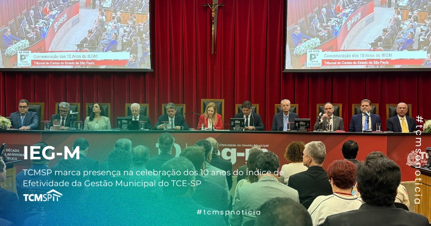 O Tribunal de Contas do Município de São Paulo (TCMSP) participou da solenidade comemorativa dos 10 anos do Índice de Efetividade da Gestão Municipal (IEG-M), realizada, na manhã desta segunda-feira (13), no Auditório Nobre do Tribunal de Contas do Estado de São Paulo (TCE-SP). O evento reuniu autoridades e representantes de órgãos públicos para celebrar uma década de avanços na avaliação da qualidade da gestão pública municipal. O Presidente do TCMSP, Conselheiro Domingos Dissei, e o Conselheiro João Antonio da Silva Filho, que representou a Associação dos Membros dos Tribunais de Contas do Brasil (Atricon), integraram a Mesa de Honra da cerimônia, reforçando o compromisso do TCMSP com a melhoria contínua das políticas públicas e a transparência na administração municipal.
