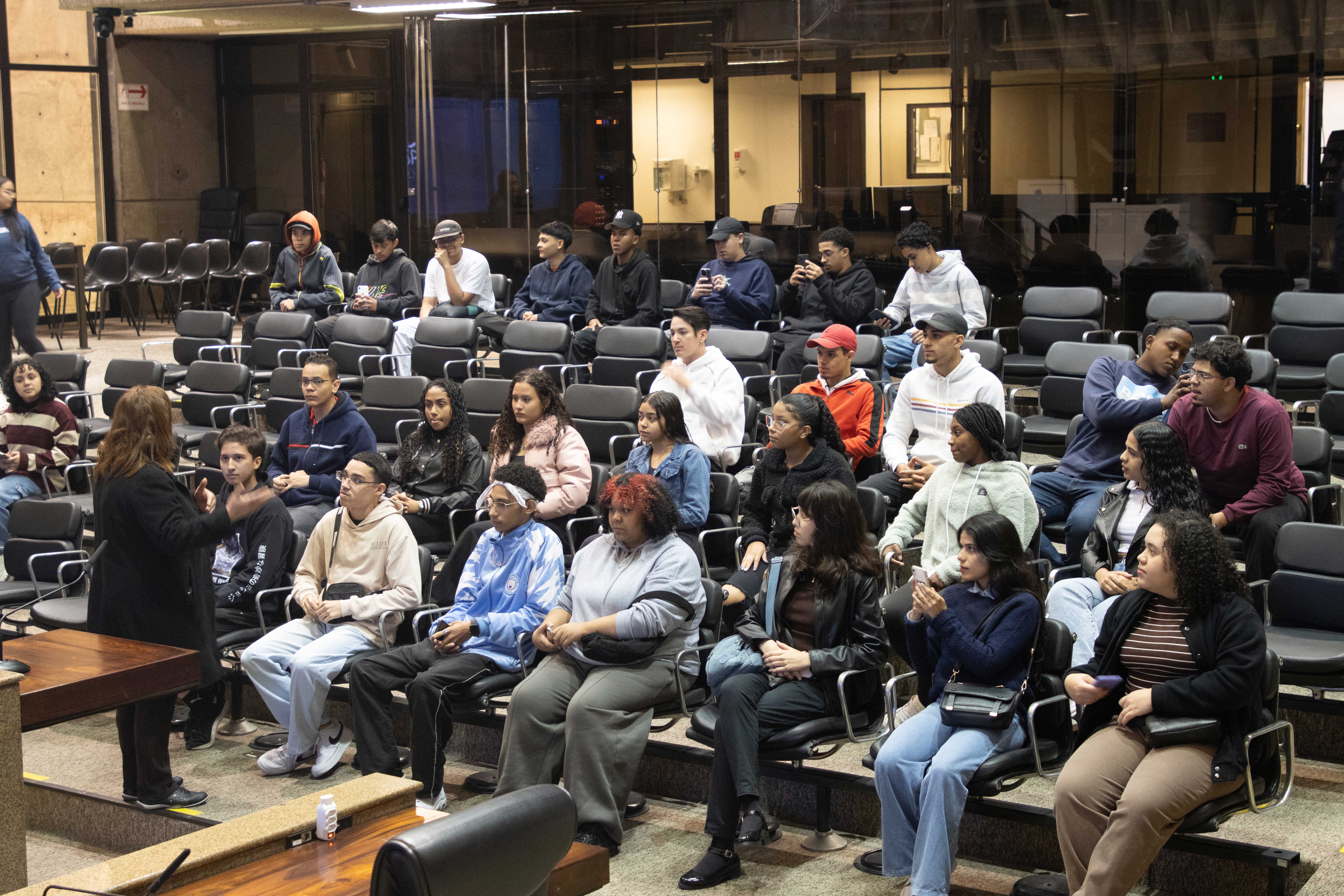 Os estudantes também interagiram com a equipe do Programa Juventude em Governo, iniciativa do Governo Aberto da Prefeitura de São Paulo. Perguntas, curiosidades e debates marcaram o encontro, reforçando a importância da participação cidadã na fiscalização da gestão pública.